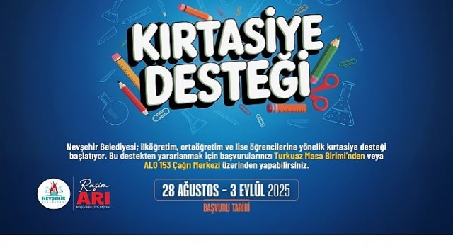 Nevşehir Belediyesi’nin öğrencilerin eğitim ve öğretim hayatına katkıda bulunmak amacıyla hayata geçirdiği Kırtasiye Desteğine başvurular başladı. Sosyal Belediyecilik şiarı ile çalışmalarını aralıksız sürdüren ve bu konuda hayata geçirdiği projelerle Türkiye’deki birçok belediyeye örnek olan Nevşehir Belediyesi, 2025-2026 eğitim öğretim yılının başlamasına sayılı günler kala eğitim destek paketini açıkladı.