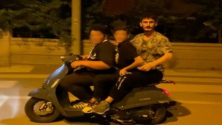 Motosiklette 2’si çocuk 3 kişinin tehlikeli yolculuğu kamerada